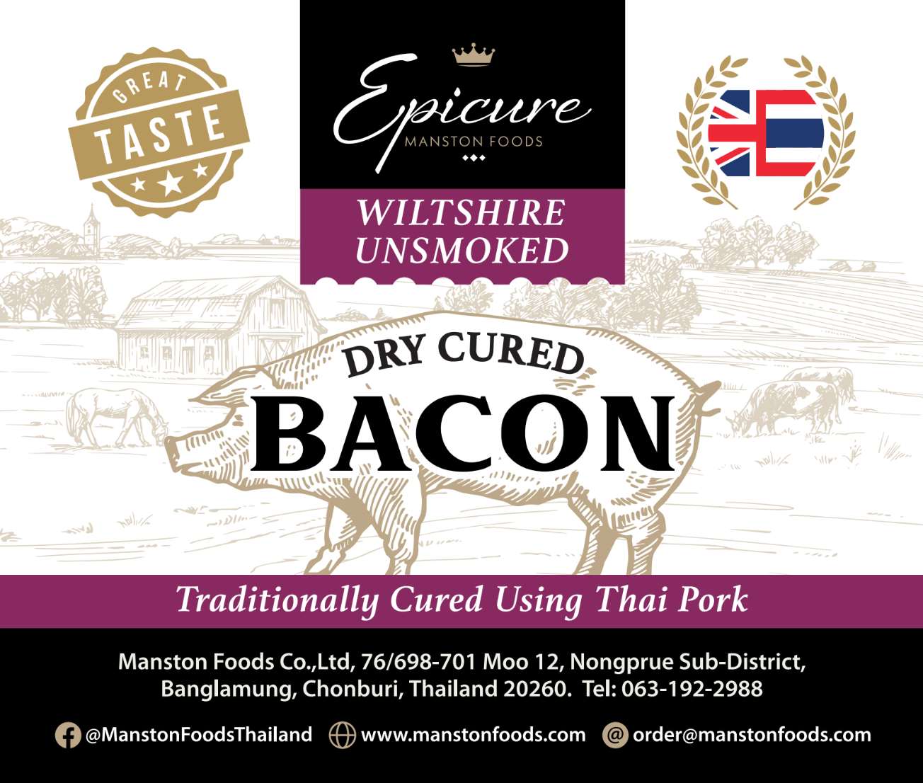 Enjoy the authentic taste of traditional Wiltshire dry-cured back bacon from Epicure. Made using premium pork and slowly dry-cured for depth of flavour, this un-smoked bacon delivers a clean, meaty taste with no overpowering smokiness.